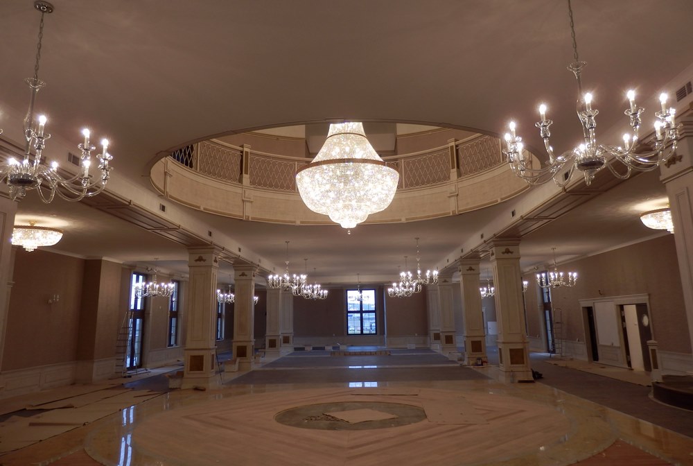 Busko-Zdrój je jedním z nejlepších polských lázeňských míst, jehož největším bohatstvím je voda s obsahem síry, jodu a bromidů. Hlavní sál jednoho z lázeňských domů ozdobilo naše impozantní stropní svítidlo ve tvaru hrušky s 68 žárovkami a výškou přes 3 metry. Celý prostor doplňuje 32 skleněných lustrů a několik spirálových stropních svítidel.