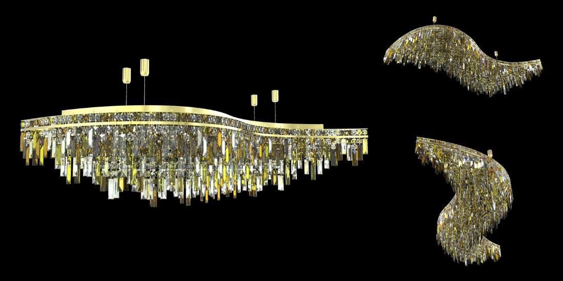 Původní koncept, designový návrh a finální provedení moderního křišťálového svítidla TX383030819 ArtCrystal.