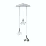 Tři stylizované květy jsou zavěšeny na regulovatelných dvoumetrových kabelech, které umožňují měnit jejich výšku a rozložení podle vašich představ. Díky tomu můžete svítidlo přizpůsobit svému prostoru – ať už ho zavěsíte nad jídelní stůl, do obývacího pokoje, haly nebo ložnice, vždy vytvoříte originální a osobitou atmosféru.